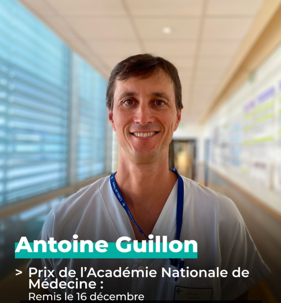 " On December 16, the French National Academy of Medicine awarded the Eloi Collery Prize to Professor Antoine Guillon, in recognition of his research achievements over the past five years. His work has notably led to the discovery of the antiviral effects of specific metabolites from the Krebs cycle, paving the way for novel therapeutic strategies against influenza.